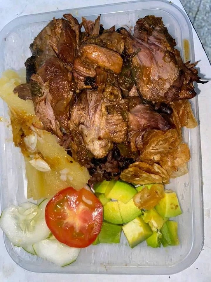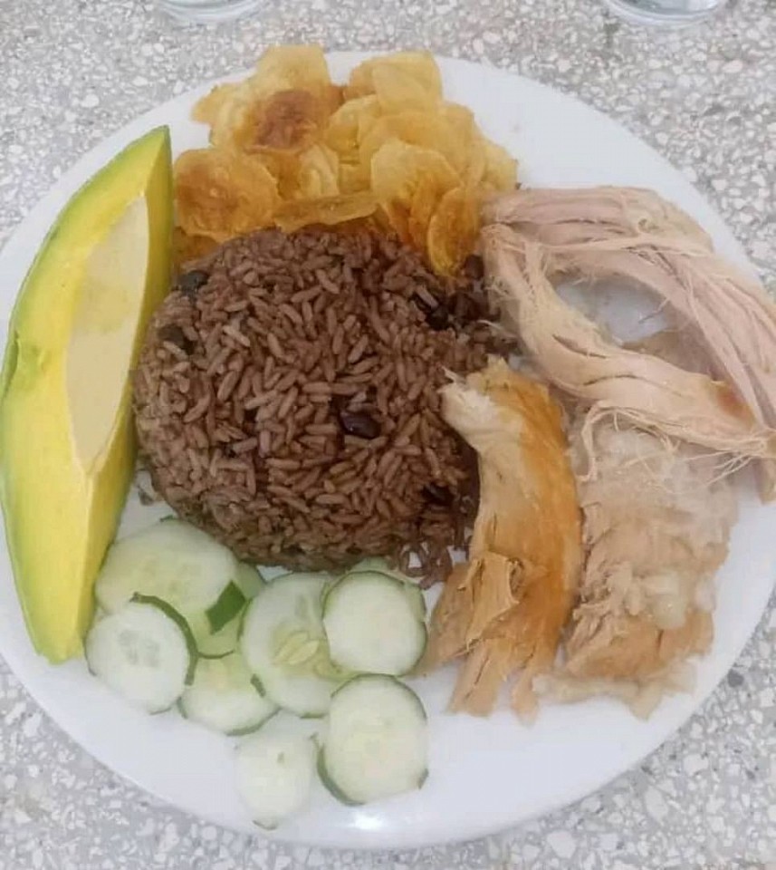 🥘Arroz con gris ensalada mixta yuca con mojo y chilindron d chivo